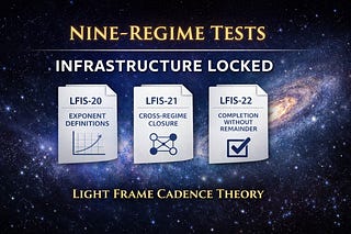 Nine observational regimes. One fixed structure. New tests are public, and the framework’s core commitments are now explicitly locked.